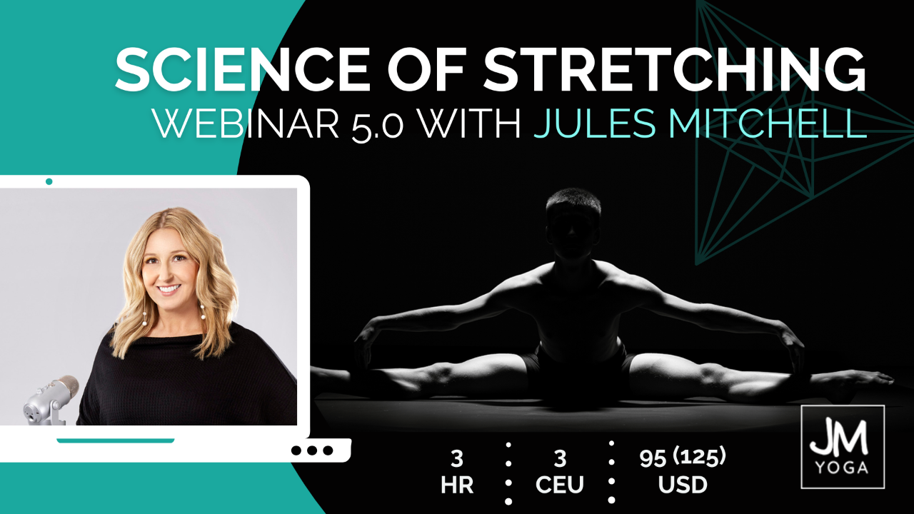 The Science of Stretching Webinar offers an introduction to biomechanics and the related vocabulary provides a foundation for a lively discussion on all things stretching. Learn what we know (and don't know) about how stretching works and what the benefits and drawbacks of flexibility training include. Discuss the properties of biological tissues and how they adapt to repeated mechanical stresses. Consider the effects during asana, adjustments, and popular alignment-based cueing. Evaluate the research and compare it to the hype to ultimately redefine what stretching means and what role it plays in yoga. Jules delivers complex scientific concepts in an easy to understand and applicable way that will immediately impact the way you teach and practice. Includes downloadable/printable PDF handout of entire slideshow and access to the recording for 30 days.